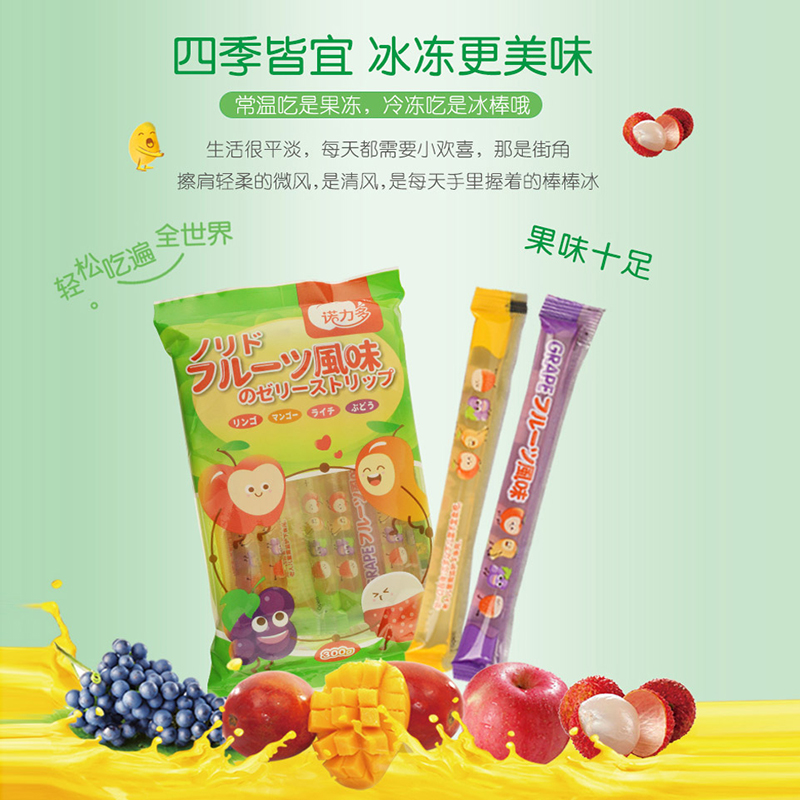 水、白砂糖、卡拉膠、芒果汁、荔枝汁、蘋(píng)果汁、葡萄汁、檸檬酸、食用香精